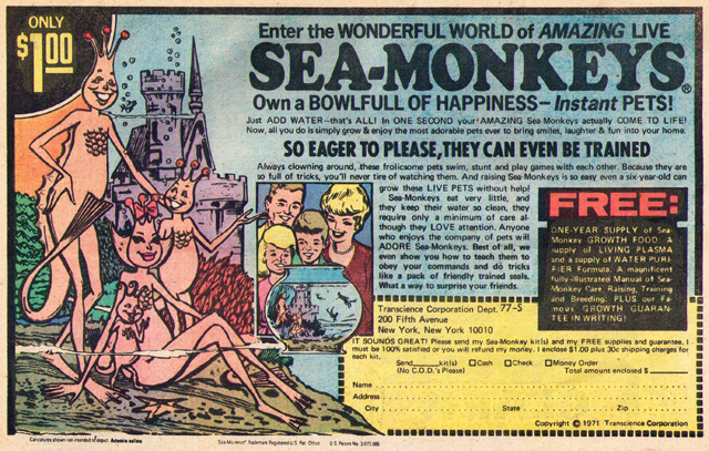 Von Braunhut, with the help of marine biologist and microcrustacean expert Anthony D’Agostino, figured out a way to treat tap water with a mix of nutrients (von Braunhut called them “magic crystals” and mixed them in a barn on his property) that would revive the shrimp in a tank at home.