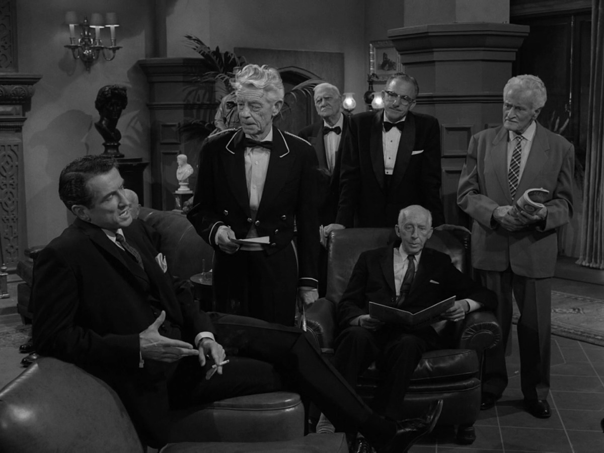 This one is a very good episode with some fine acting by Franchot Tone and Liam Sullivan. There is not just one twist at the end of the episode but two of them. This episode has no supernatural events and it is not a typical episode of the Twilight Zone. It’s pure story and what a story. It was set in a prestigious Gentlemen’s Club with a talkative younger man named Jamie Tennyson (Liam Sullivan) and the grumpy older fellow named Colonel Archie Taylor (Franchot Tone).
