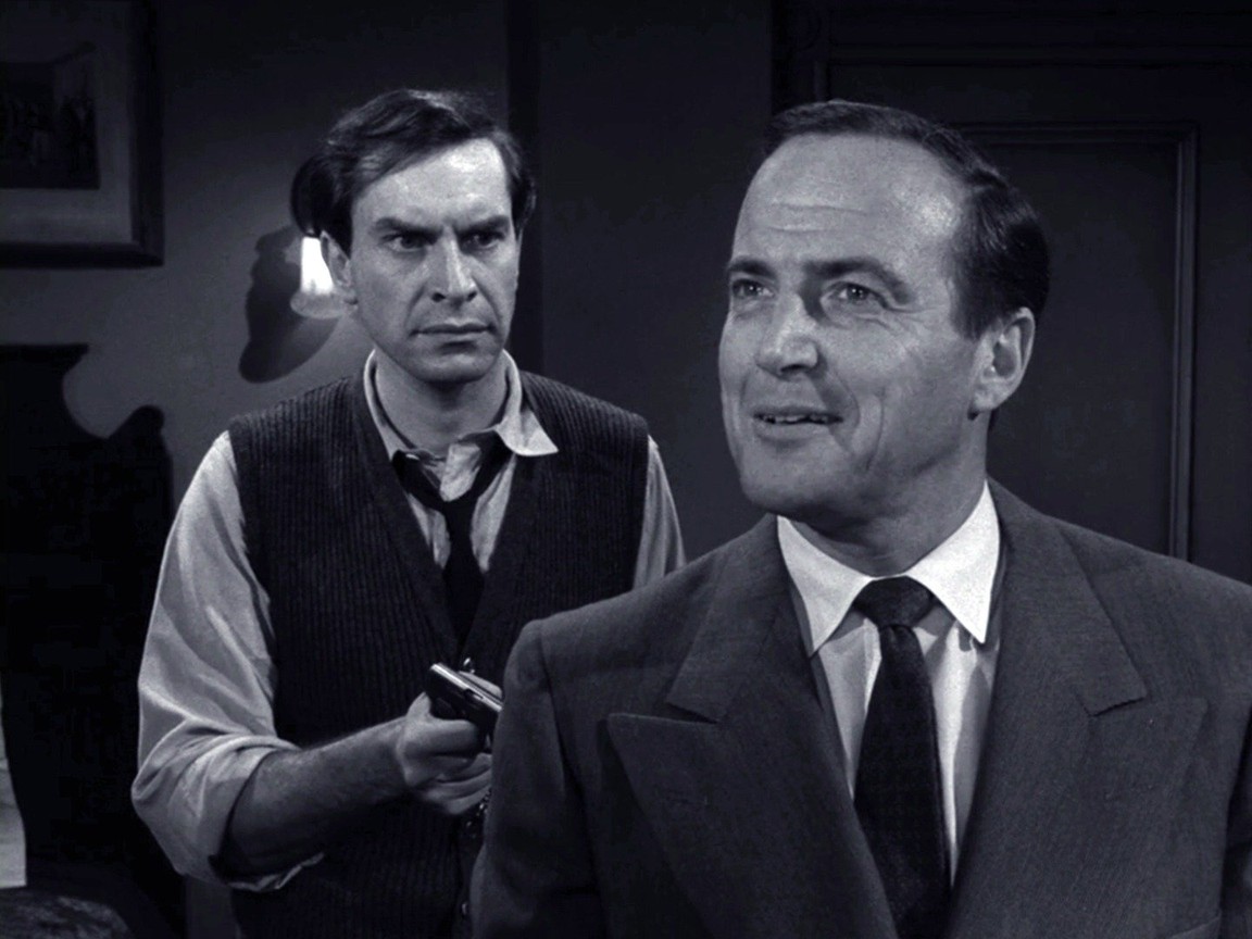 Major Ivan Kuchenko, on his way West. On his way to freedom: a freedom bought and paid for by a most stunning ingenuity. And exit one Commissar Vassiloff, who forgot that there are two sides to an argument – and two parties on the line. This has been the Twilight Zone.