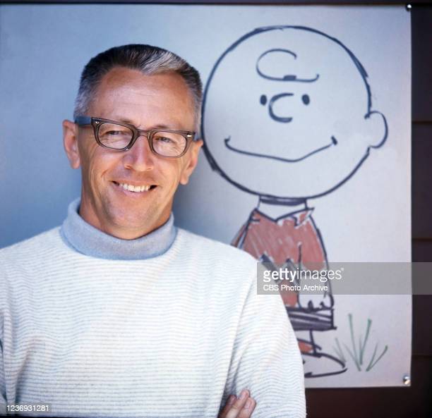 Previous Image Next Image Charles Shutz LOS ANGELES – JANUARY 1: Charles M. Schulz with a drawing of Charlie Brown, one of his Peanuts characters. Image dated January 1, 1962. (Photo by CBS via Getty Images)