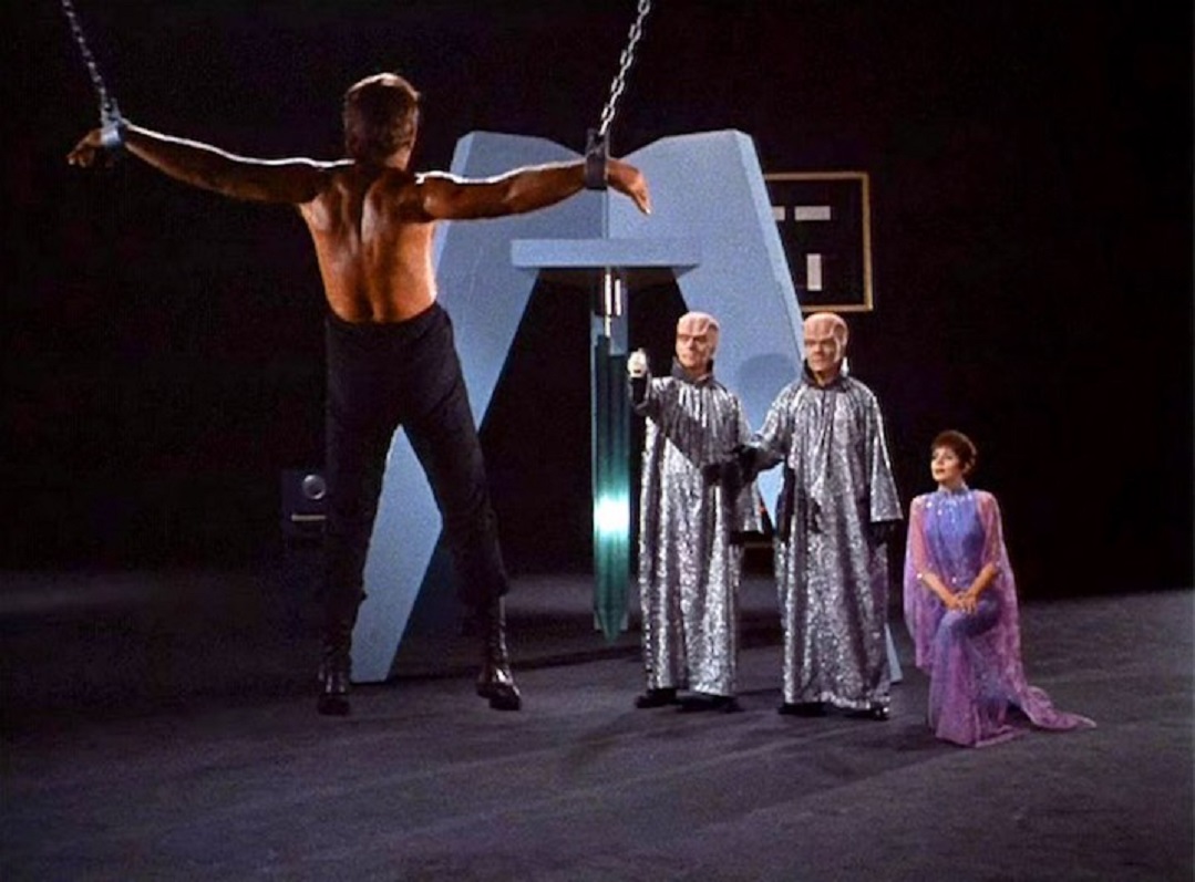 the Enterprise comes upon a superior alien race that selects the landing party of Kirk, Spock, McCoy, and a pair of unnamed crewmen as guinea pigs in a psychological experiment. The aliens look like second cousins to the Talosians and we know what intellects they had. You also know what happens to unnamed crewmen in any Star Trek episode.
