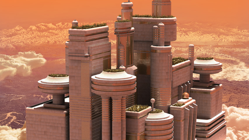 According to John M. Dwyer (on the TOS season 2 DVD special features), the metal artwork and sculptures that appear throughout the city were mostly parts of metal furniture, like tables, etc. that he had rented from “a guy up in Topanga Canyon”, minus the glass tops, and much care had to be taken to return them in their original condition.