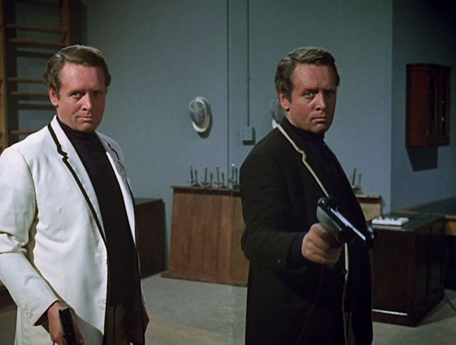 Having a character encounter their double is a common movie or television ploy (even two of the castaways on “Gilligan’s Island” met their doubles), but few examples are as effective as Number Six confronting his spitting, smirking image. It’s not just one of the best interrogation episodes but one of the best I’ve seen. Number 6 and Number 12 are going at it.