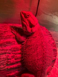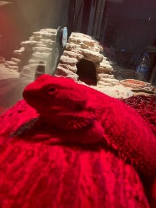 Later on, we met him at an exit and he gave me the dragon named Rocky with the aquarium, lights, heat lamp, and everything else you would need. We were in a cargo van so Rocky had a long bumpy ride the next day to his new home. I told the wife when we pulled up to unload…”I have a guy without a home…he needs to have somewhere to stay so I told him he could stay with us. ” She said…”you mean he is in the van????” I opened the door…a complete shock is the best way to describe it. Now Rocky has a permanent home with us. Forget the friends I thought would want him…he is the least needy soul of the entire household. Now we are starting to interact with Rocky more. He will climb on you and sit there on your shirt and chill out.